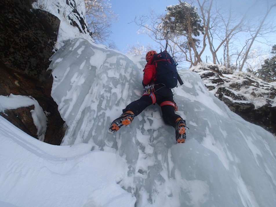 なおも、先行している2パーティのトレースを踏ませていただき、10m滝。